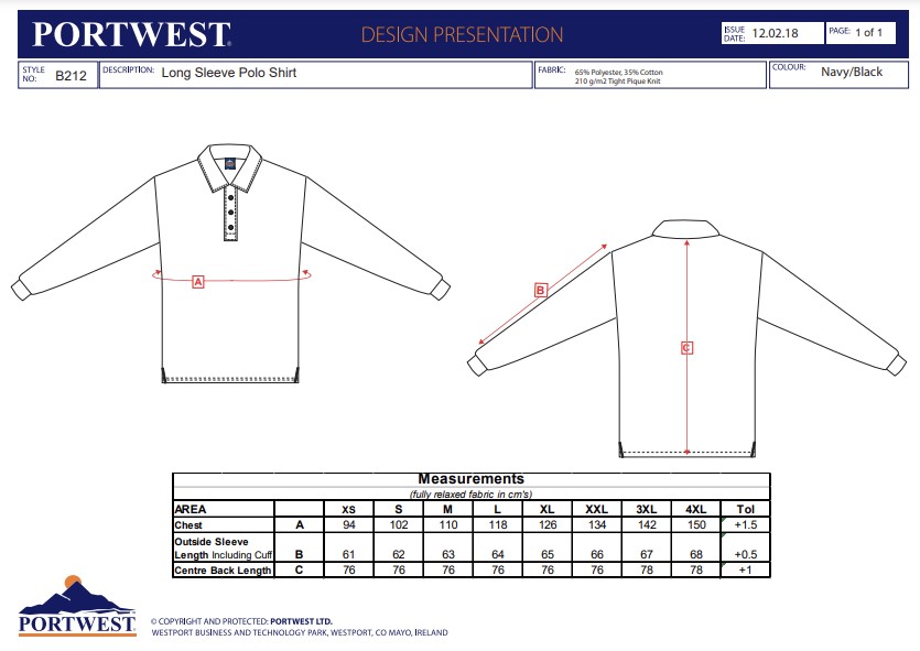 Portwest C3 Long sleeve polo shirt C3-B212